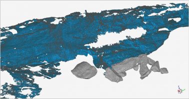 Back in the office the engineers at Wysiwyg 3D processed the data creating the volume of each individual rock as well as 10mm spacing cross-sections of the entire cliff.